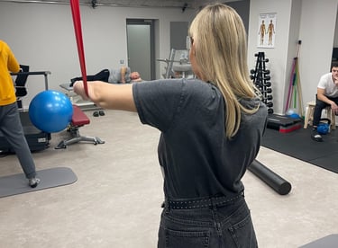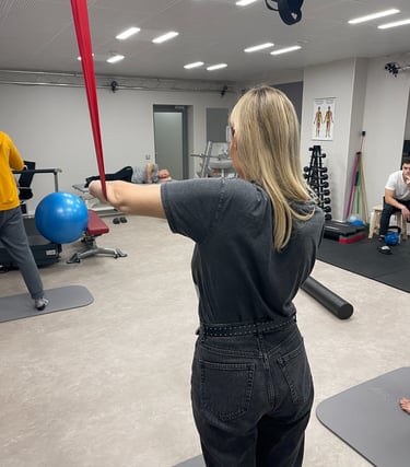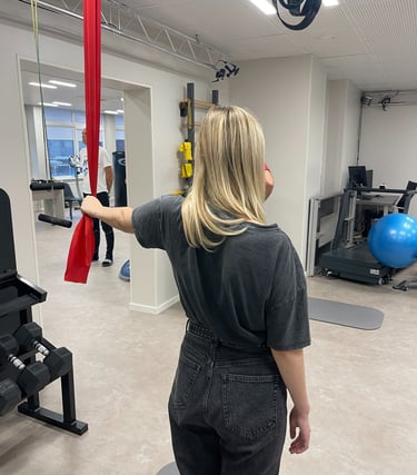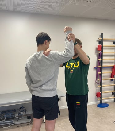 Pratimai, kurie yra neatsiejama kineziterapijos plano dalis po peties sąnario rotatorių manžetės sausgyslių rekonstrukcinių operacijų padės :